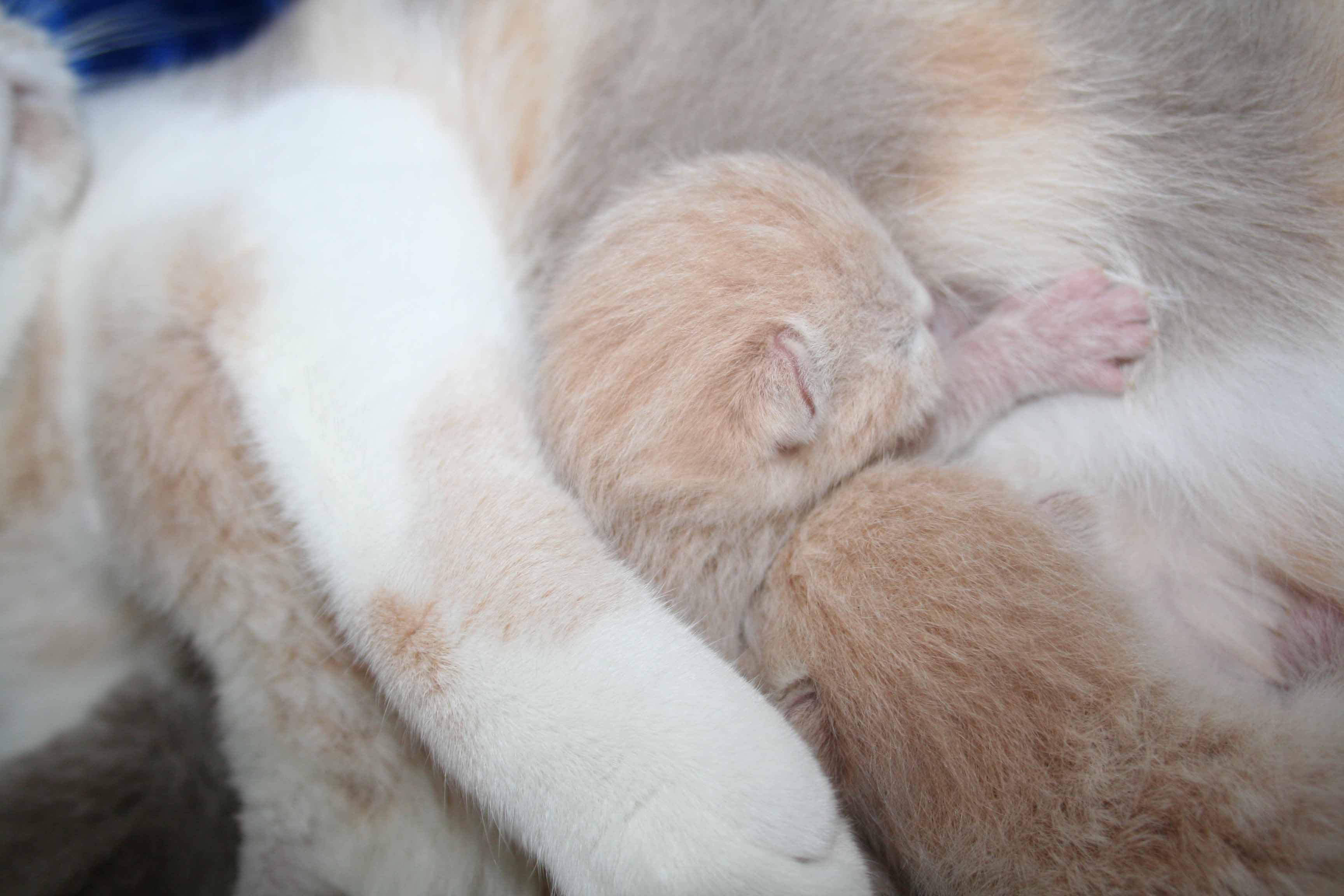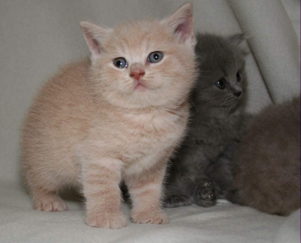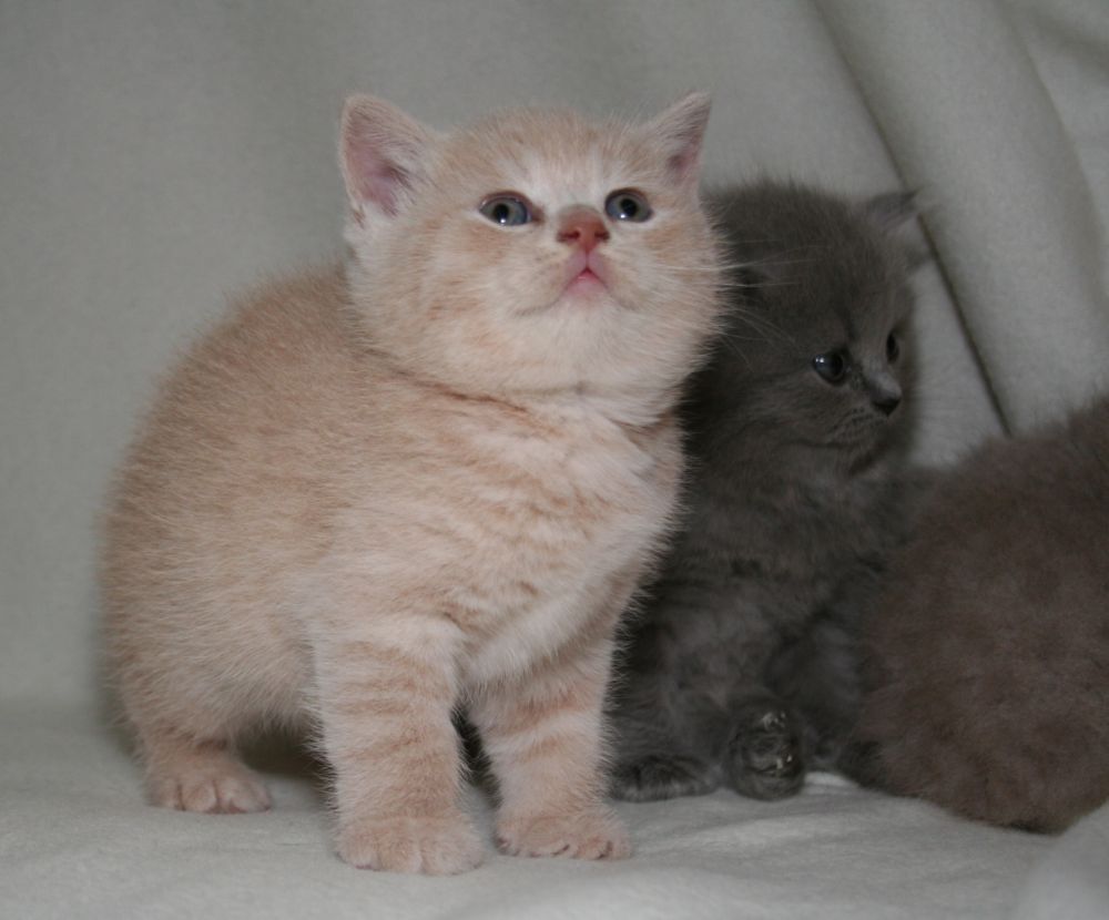 Two cream males, lilac male, bicolor cream male in bicolor lilac female.